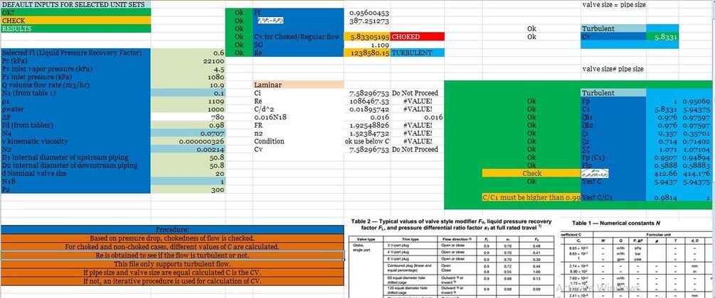Excel file for sizing and design control valves on compressible and incompressible streams [.XLS]